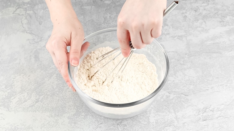 - Whisk together the flour, baking powder, baking soda, cornflour, and salt. Set aside.
