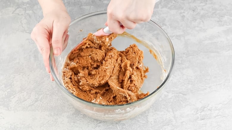- Add the egg, vanilla, and peanut butter, and mix until combined.